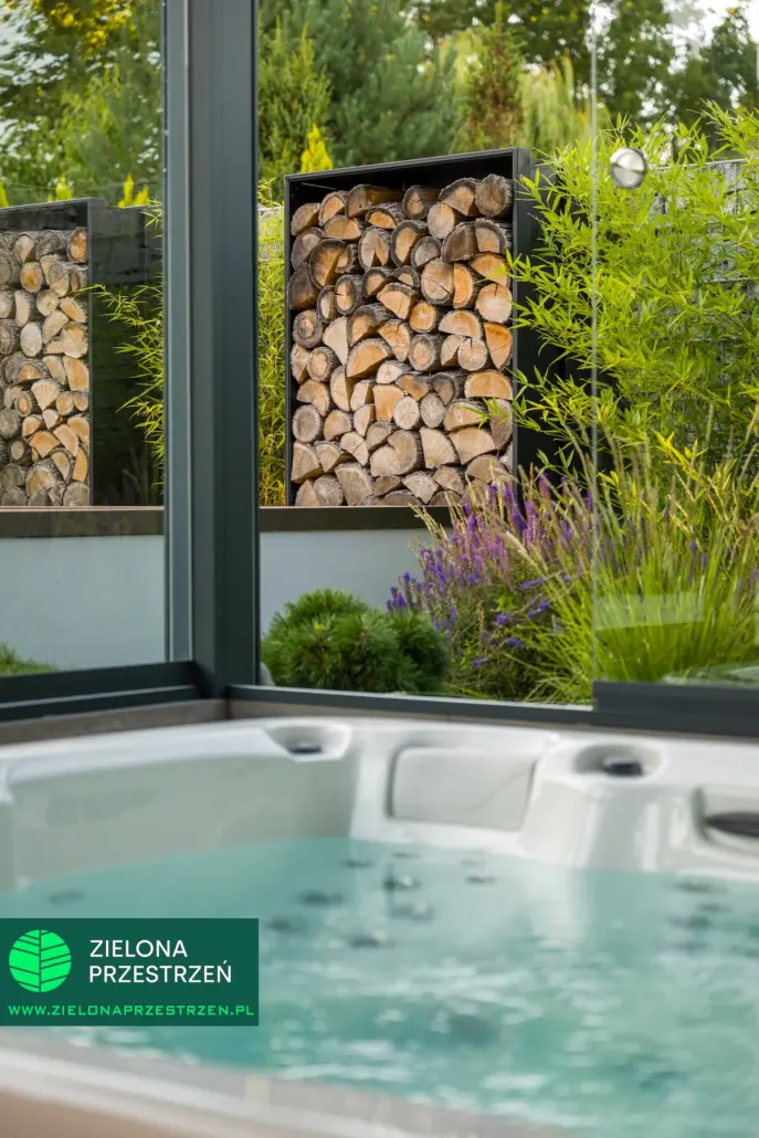 Strefa SPA – zaprojektowana wspólnie z Inwestorem, z wykorzystaniem przesuwnych paneli szklanych i drewnianych, które pełnią funkcję wentylacji i osłony. To rozwiązanie było autorskim pomysłem Klienta – kreatywnym, praktycznym i perfekcyjnie dopasowanym do potrzeb.