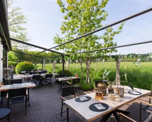 Dodatkowe opcjonalne wyposażenie w postaci screenów wiatrochronnych pozwala na komfortowe korzystanie z tarasu również w nienajlepszych warunkach atmosferycznych. Dzięki nim można cieszyć się wypoczynkiem na świeżym powietrzu od wczesnej wiosny do późnej jesieni.